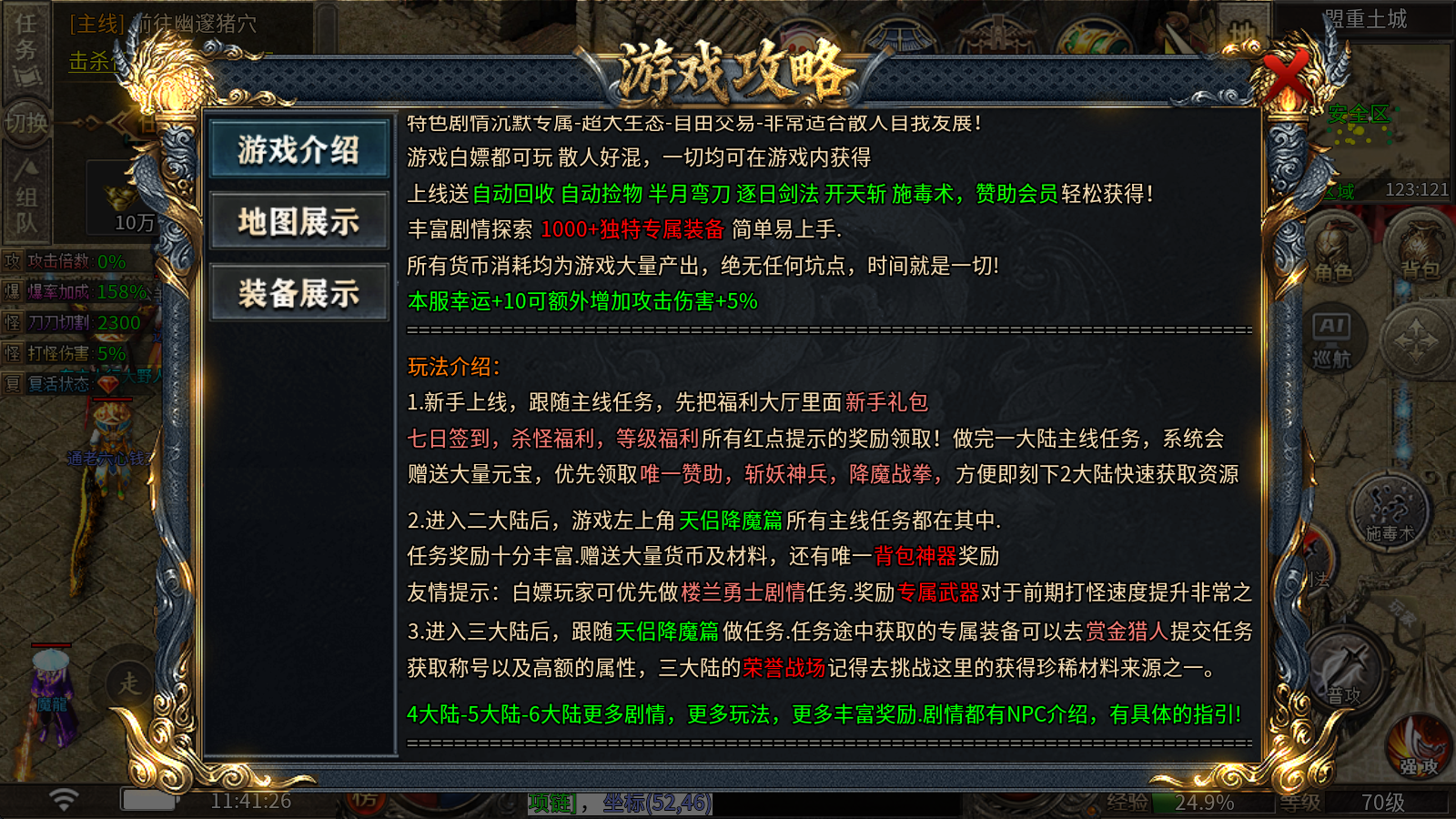 新手剛進入游戲時,先跟著主線任務走,同時記得把福利大廳里那些帶紅點提示的獎勵都領了,包括新手禮包、七日簽到、殺怪福利和等級福利這些內容。