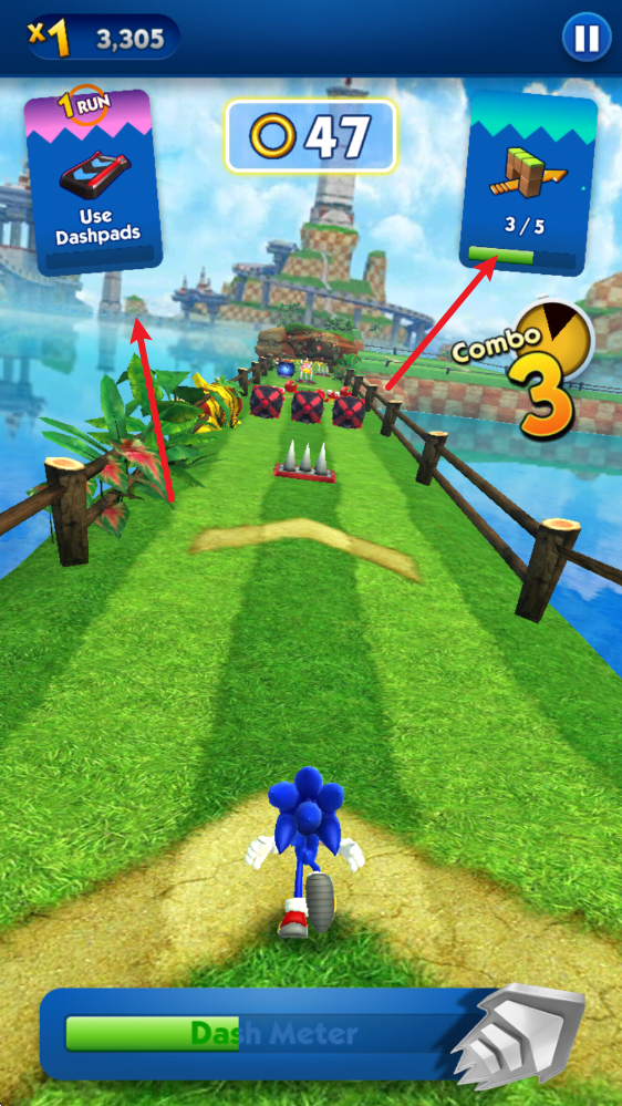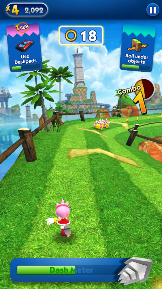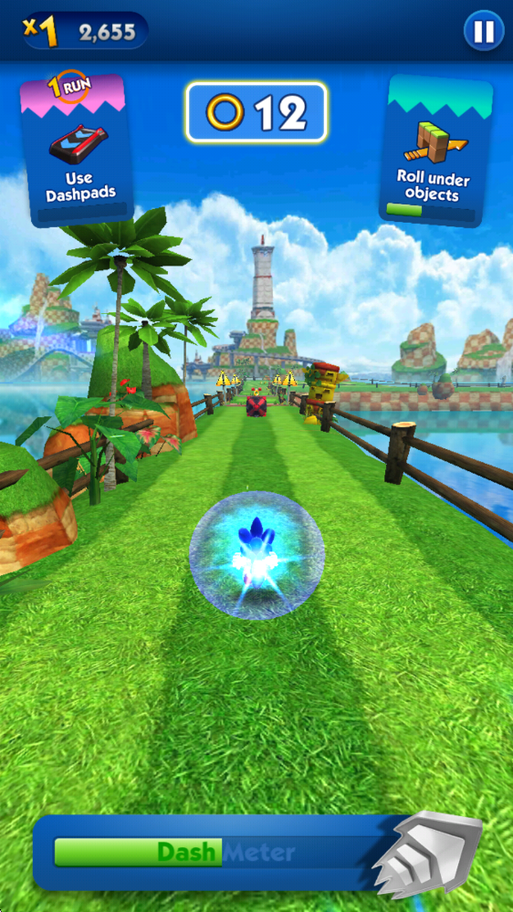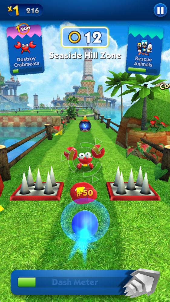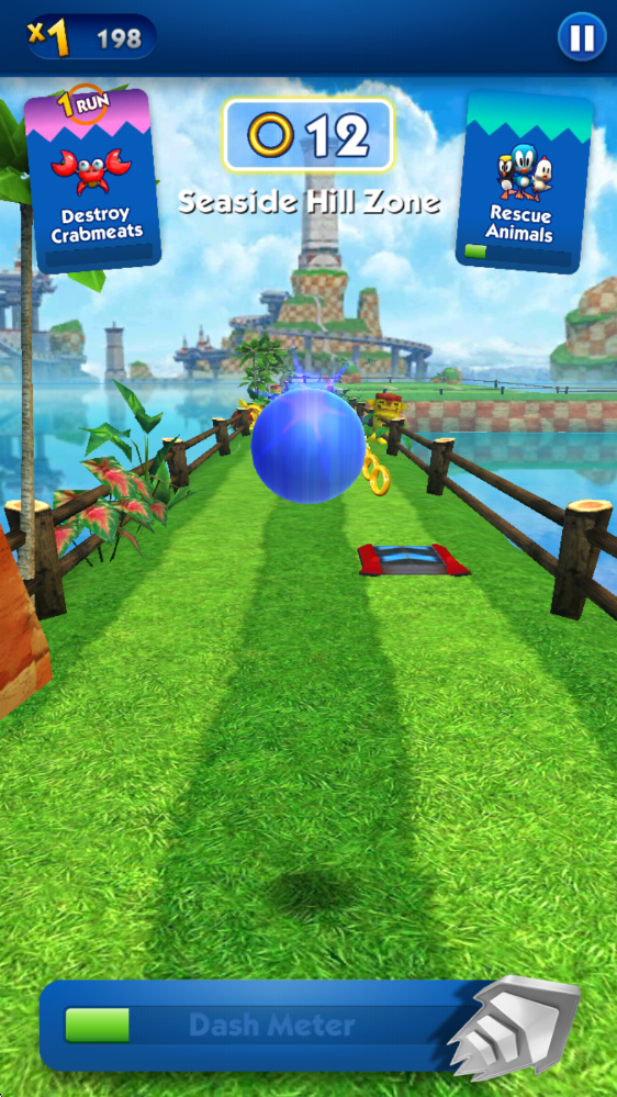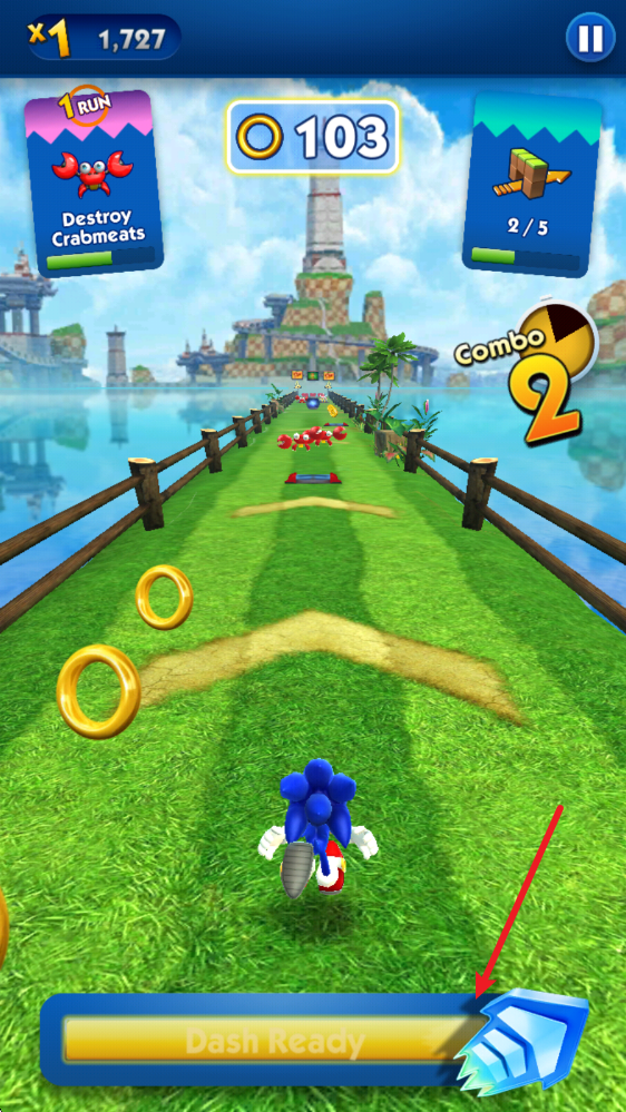 進入游戲后,索尼克會自動向前沖,你可以通過左右滑動來改變他的方向。