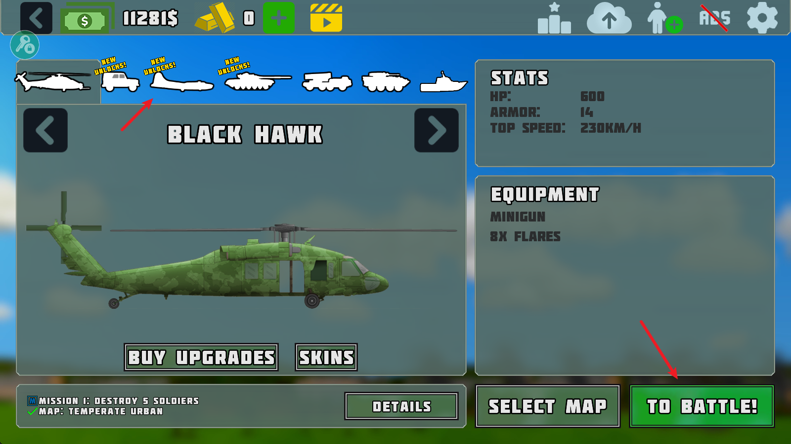 在游戲里,戰斗開始前我們能夠挑選各式各樣的載具,像直升機、汽車、坦克之類的都可以選。