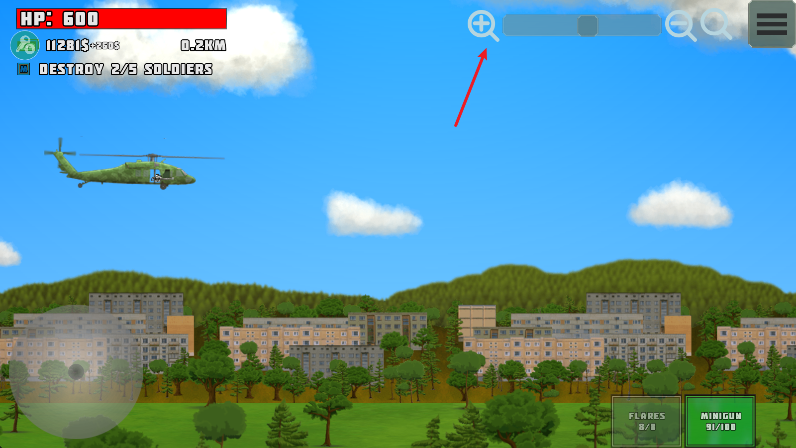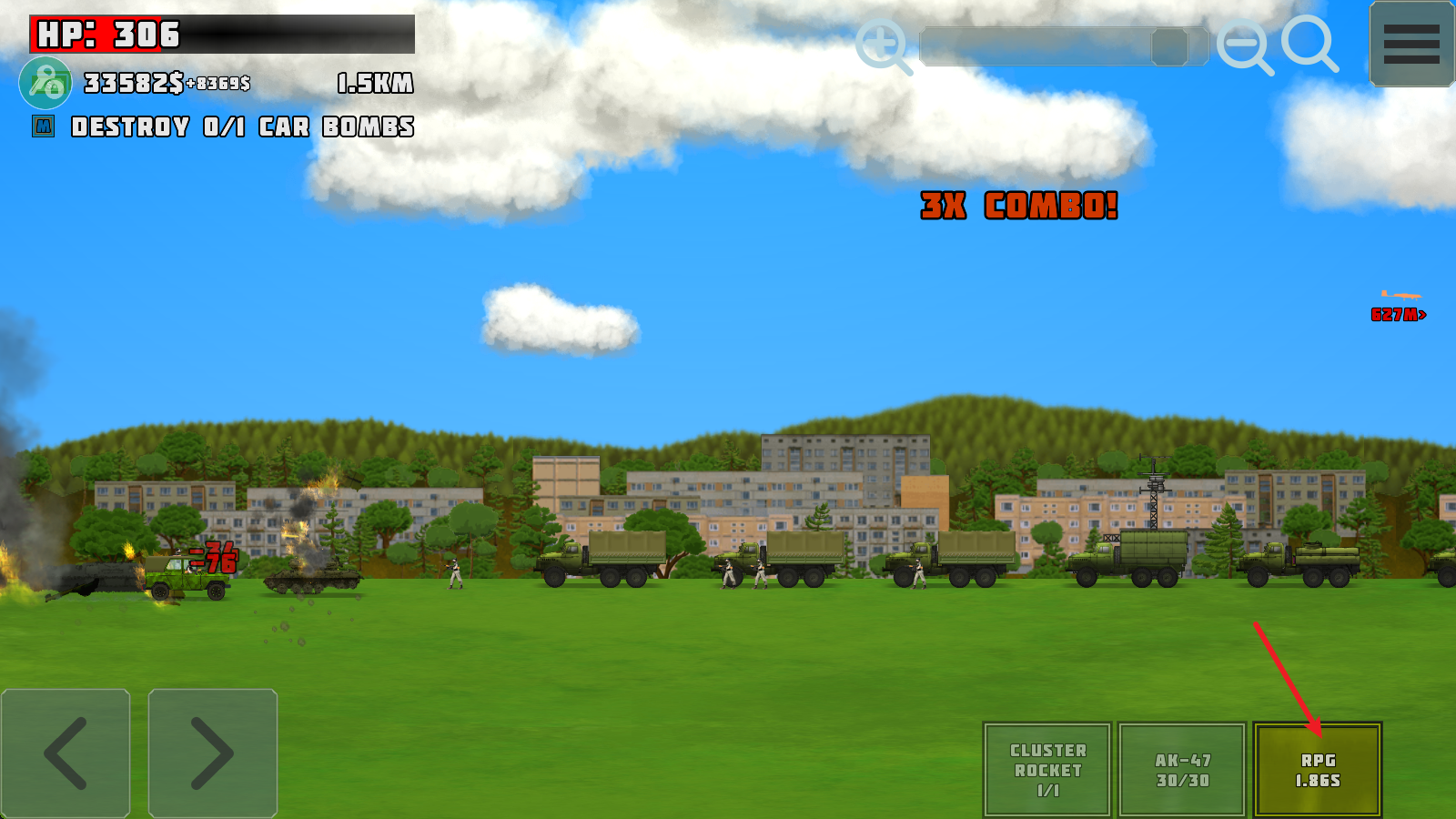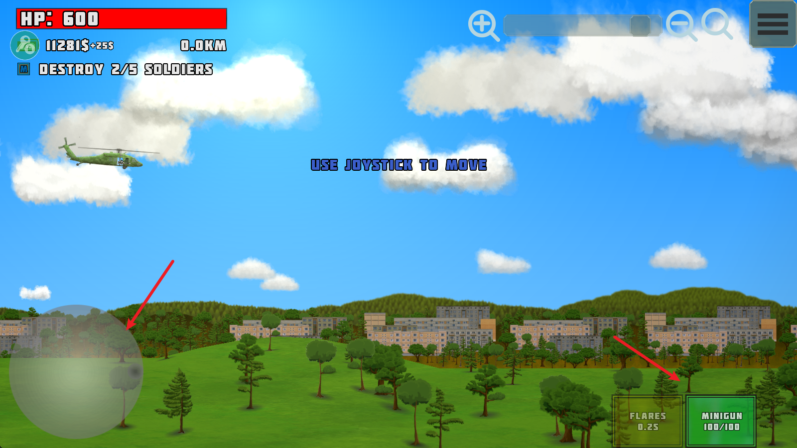 戰斗時,左邊的搖桿負責操控移動,右下角的按鈕能切換不同的武器。
