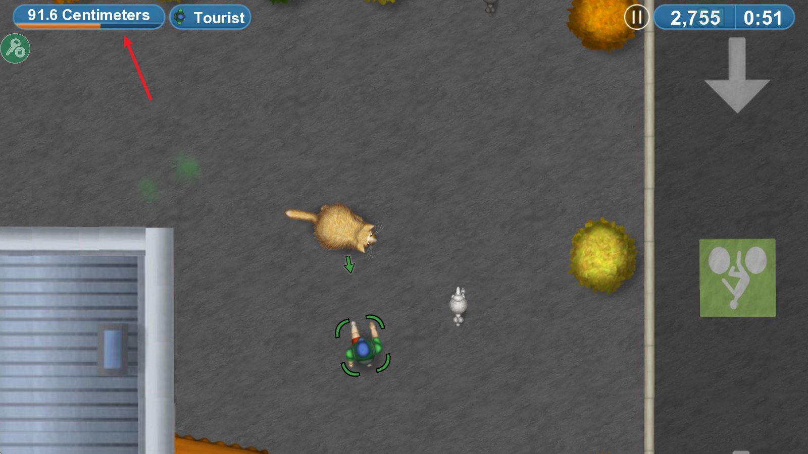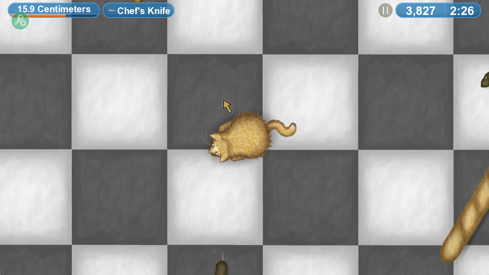 在游戲里,只要拖動屏幕就能操控貓咪移動,而帶有方塊標(biāo)識的物品意味著可以被吞噬。