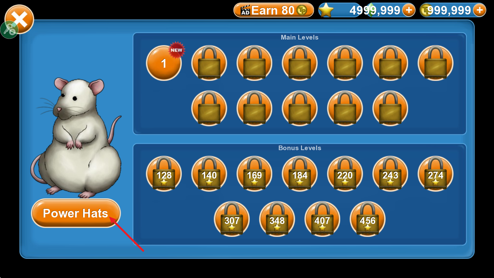 進(jìn)入新的場景關(guān)卡后,就會啟用相應(yīng)的新角色,并選擇Power Hats。