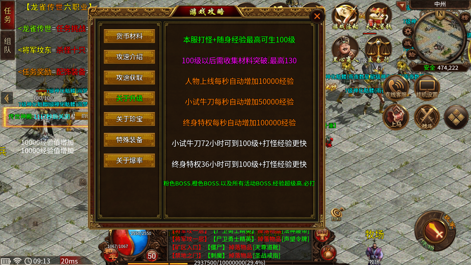 在本服務器中,通過打怪獲取經驗并搭配隨身經驗加成,玩家能夠輕松提升等級,最高可達到100級。