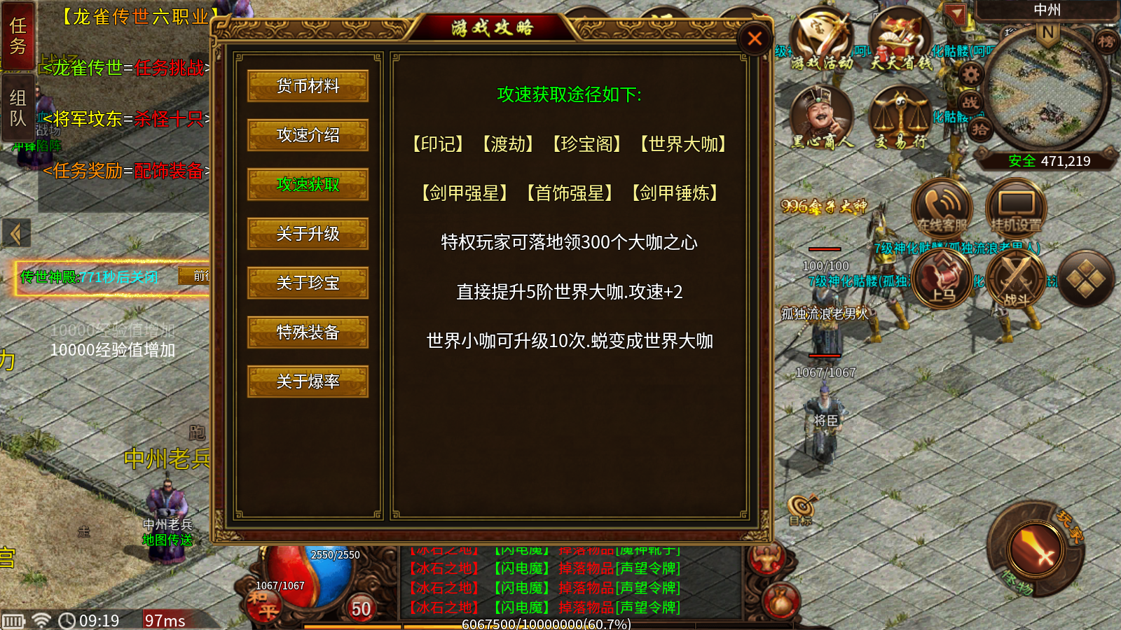 攻速的獲取渠道包括:印記、渡劫、珍寶閣、世界大咖、劍甲強星、首飾強星以及劍甲錘煉。