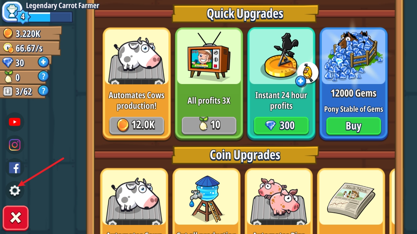 點(diǎn)擊下方的鏟子圖標(biāo)即可進(jìn)入升級(jí)界面,對(duì)相應(yīng)作物的收益進(jìn)行升級(jí)。