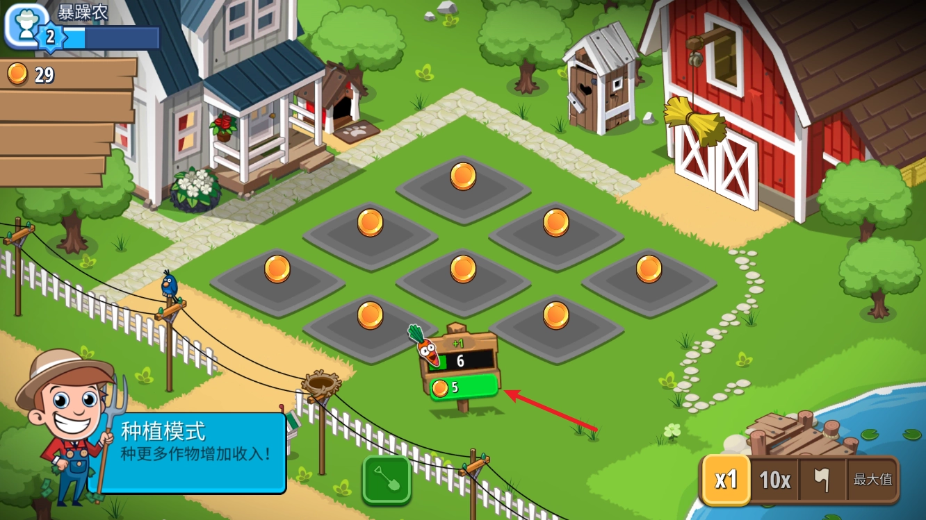 持續(xù)提升作物等級(jí),解鎖更多土地資源,借助商店道具提高種植效率,助力你獲取更豐厚的收益。