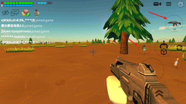 你可以通過選擇右上角的武器來實現自由切換,下方還配備了各類投擲武器。