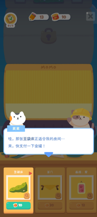 我們能夠隨時看到貓咪頭頂的需求物品,點擊左下角的沙發就能進入商店。