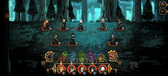 如圖所示,戰(zhàn)斗時(shí)角色下方會(huì)顯示對(duì)應(yīng)的行動(dòng)槽與卡池。開局階段僅設(shè)有5條技能欄,每條技能欄下方均配有角色頭像。隨著戰(zhàn)斗的推進(jìn),當(dāng)前每個(gè)角色最多可擁有3條技能欄,而這些豎向排列的技能欄,實(shí)際上代表的就是角色的速度屬性。