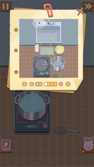 進入關卡后,你得依照指定步驟制作美食,點擊場景里的物品和道具就能使用它們。