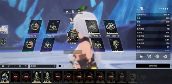 戰技流派比較適合跑圖時使用,搭配方式如圖所示。玩戰技的話需要考慮神智的消耗問題,所以得優先把技能效益堆到150%。核心模組是海妖之羽翼鼓舞和百首之凜風昂揚。