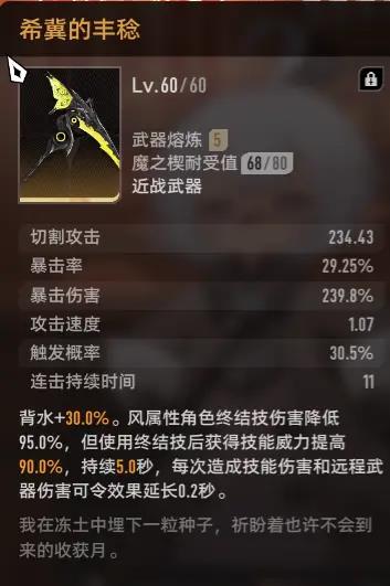 近戰武器的首選是專武“希冀的豐稔”,獲取途徑包括周本掉落材料鑄造或卡池抽取。盡管成型后的賽琪難以完全吃滿背水效果的傷害加成,但該武器提供的90%技能威力加成,能顯著提升賽琪同律武器的輸出。除此之外,還可以考慮選擇“懲戒的煉火”和“輝珀刃”這兩款武器。