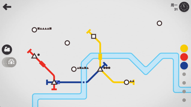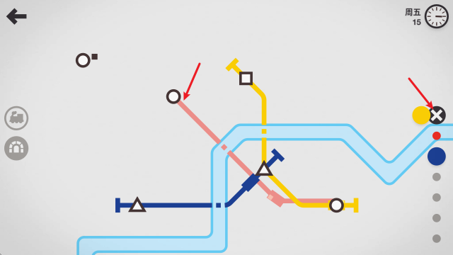 在游戲里,只要拖動屏幕上的兩個點就能完成連線,搭建出地鐵軌道,之后就能啟動運行了。