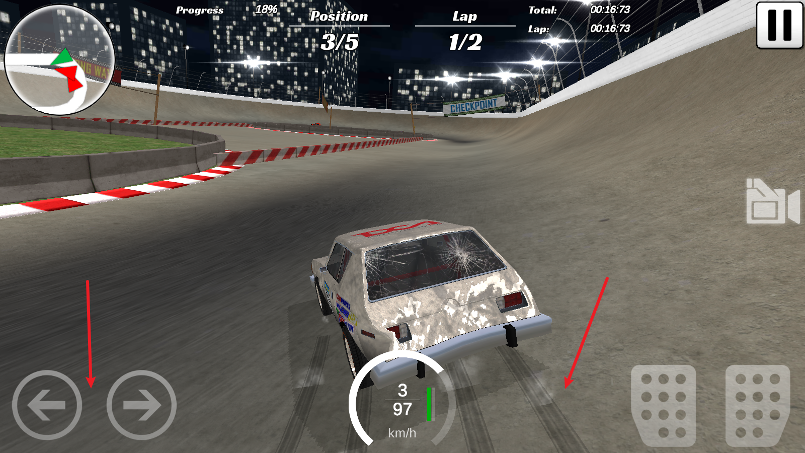 進(jìn)入游戲后,左邊的方向鍵能操控轉(zhuǎn)向,過(guò)彎時(shí)還可以完成漂移哦。