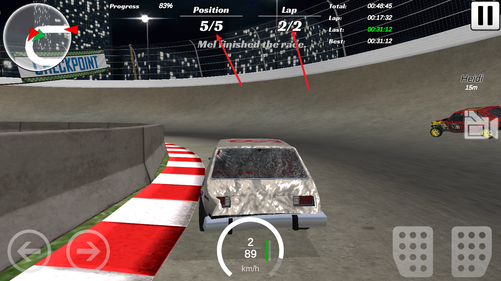 游戲上方會(huì)顯示你當(dāng)前的名次以及圈數(shù)。