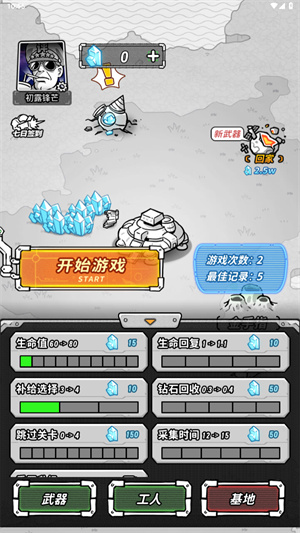 回到主界面后,把基地和武器都升級一下,這樣下次挑戰關卡時就能擁有一定的優勢了。