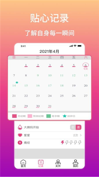 精準(zhǔn)預(yù)測大姨媽,及時提醒月經(jīng)期。