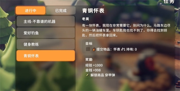 往前走就能看到一輛白色的油罐車,走到它的車門邊,用機械鑰匙把車門打開,就能找到那塊青銅懷表了。