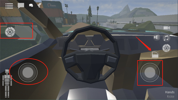 左側(cè)上方的圖標(biāo)具備剎車功能,左側(cè)下方的虛擬按鍵可操控車輛前進(jìn)或后退,右側(cè)的圖標(biāo)用于控制車輛向左或向右行駛。