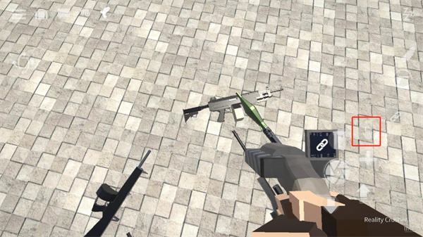 制作出一件武器并放置在地面,玩家需操控角色,把準(zhǔn)心移至武器處,此時(shí)左側(cè)會(huì)出現(xiàn)一個(gè)按鍵,別忘了點(diǎn)擊它。