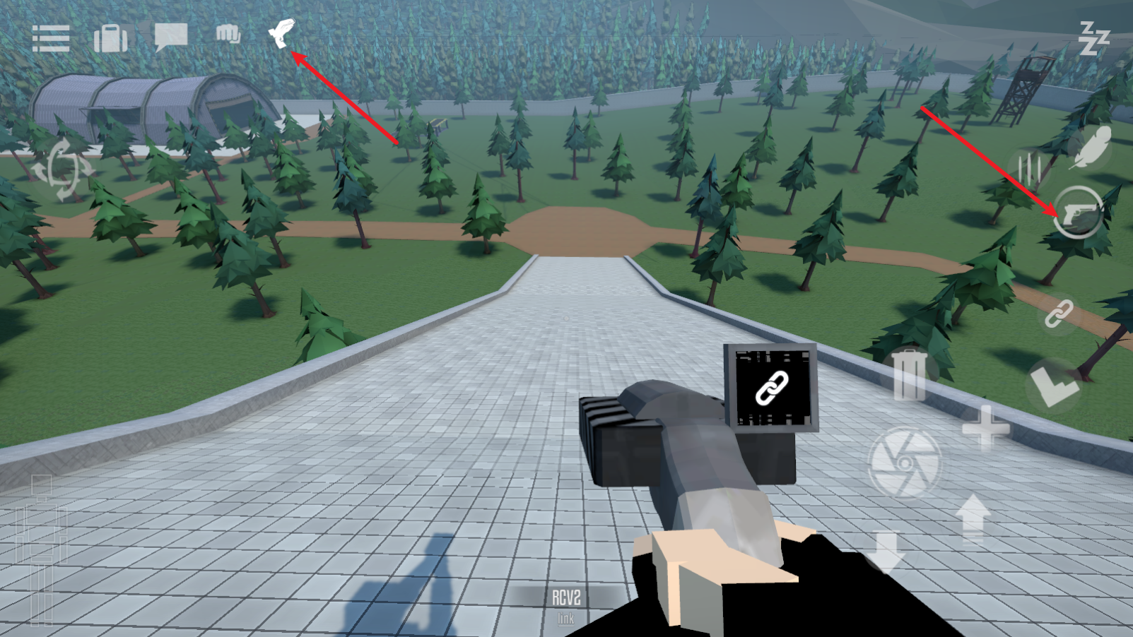 你可以通過右側(cè)的手槍鍵或者左上角的按鈕來切換武器,比如切換到手槍后就能進(jìn)行射擊操作了。