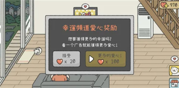 最后點擊電視,也有一定概率領(lǐng)取到幸運頻道的愛心獎勵。