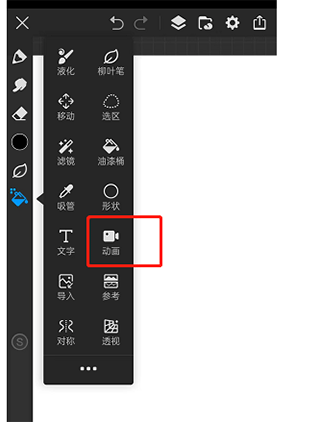 第二步:點擊左側工具欄中的【動畫】工具,若該工具不在當前工具欄內,可點擊四個小正方形的圖標,這樣就能顯示所有工具,具體可參考圖示。