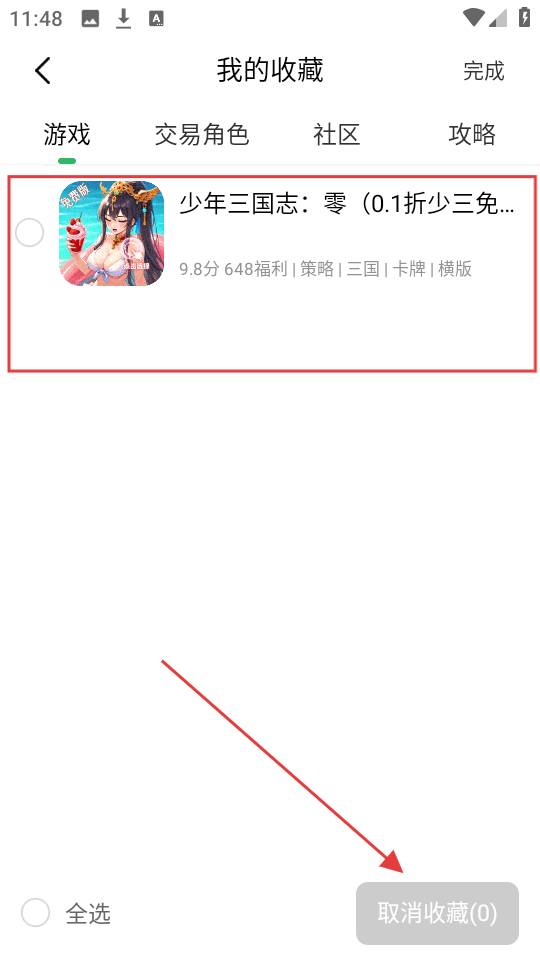 進入編輯模式后,我們可以選擇想要取消收藏的游戲,接著點擊【取消收藏】按鈕,這樣就能取消對該游戲的收藏了。