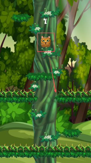 接著,按住屏幕讓猩猩沿樹干向上攀爬,避開障礙。