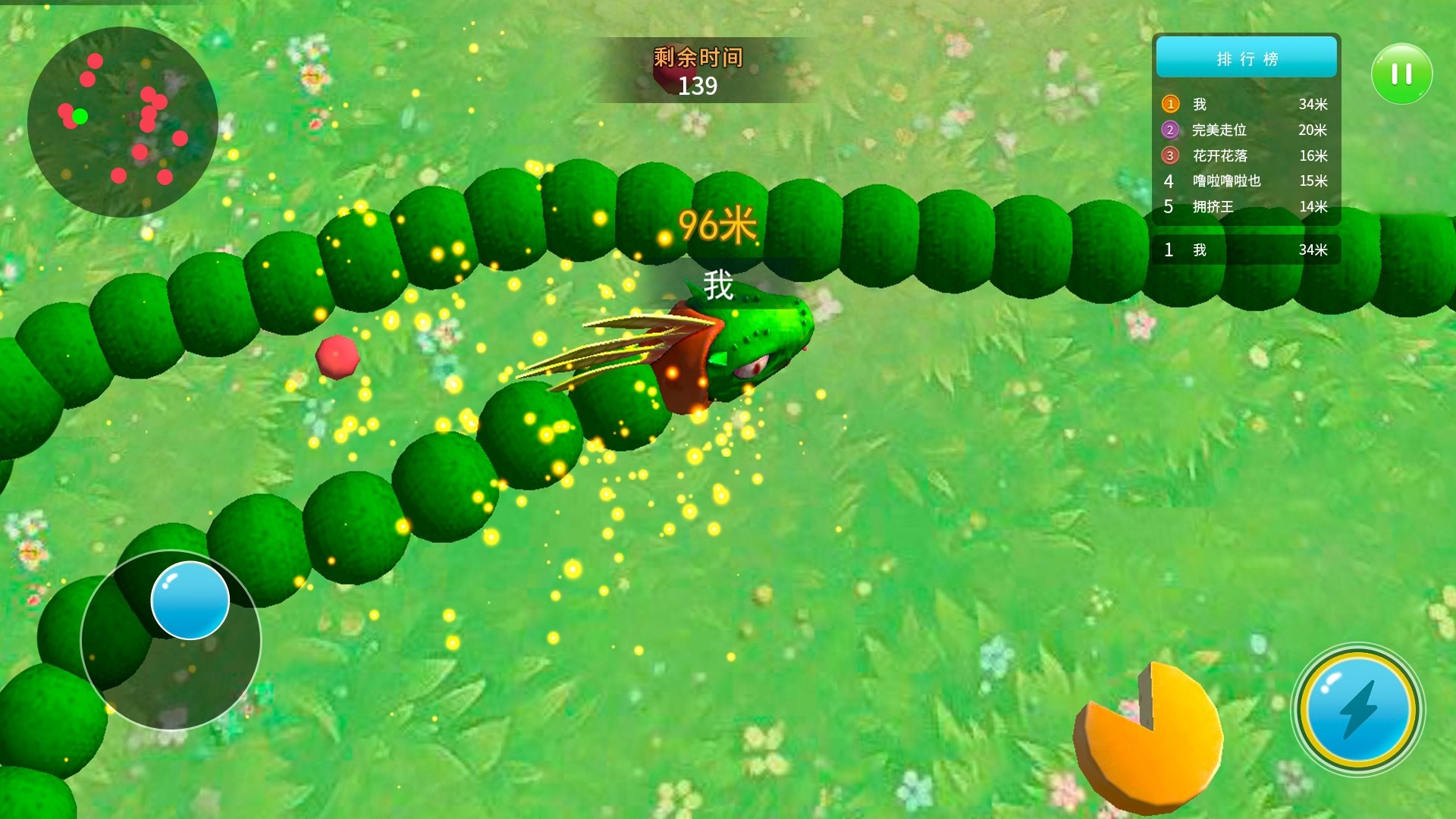 在貪吃蛇冒險王游戲中,你需要擊敗所有的巨蛇,這樣你的蛇就能迅速成長壯大。