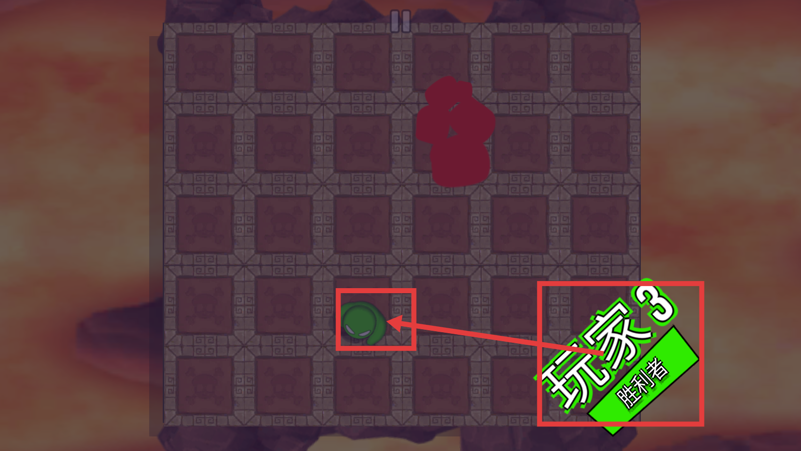 研究【玩家3-勝利者】的綠色角色移動策略,在格子間巧妙穿梭,撐到最后一刻,成為生存冠軍。