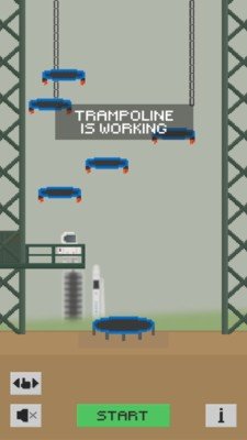 《蹦床在工作》是一款帶有航天元素的休閑益智游戲,玩家將化身為宇航員,在游戲里體驗多樣的玩法。游戲包含眾多關卡,難度會隨著關卡的推進逐步提升。玩家可以挑戰難度更高的任務,游戲的操作方式十分簡單,通過踩踏蹦床能讓角色不斷升高,玩家需要找準合適的時機利用蹦床將宇航員送往太空,并且在訓練環節中進行反復嘗試。