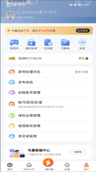 u號(hào)租平臺(tái)是一款自由賬號(hào)交易類的應(yīng)用,在這里有很多游戲賬號(hào)可以進(jìn)行交易,所有游戲都經(jīng)過了嚴(yán)格審核,整個(gè)交易過程也十分安全。為了防止賬戶被找回,平臺(tái)還提供24小時(shí)在線客服,隨時(shí)幫助用戶處理各種問題,快來(lái)體驗(yàn)吧。