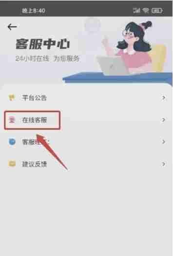 在個(gè)人中心”頁(yè)面中,點(diǎn)擊“客服中心”按鈕。