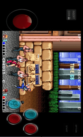 基礎移動與攻擊:進入游戲后,點擊左上角投幣口模擬投幣,再點擊右上角 “start” 即可開始游戲。左側圓形按鍵控制角色移動方向,通過上下左右滑動實現走位。右側設有攻擊鍵,點擊可出拳,連續點擊能形成連招。