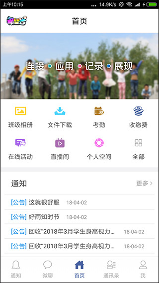 軟件中的功能非常廣闊,支持查看班級相冊,考勤,還能夠明細查看收繳費用,同時支持在線活動,支持網課等等,并且在這里能夠收到更加權威的通知信息。