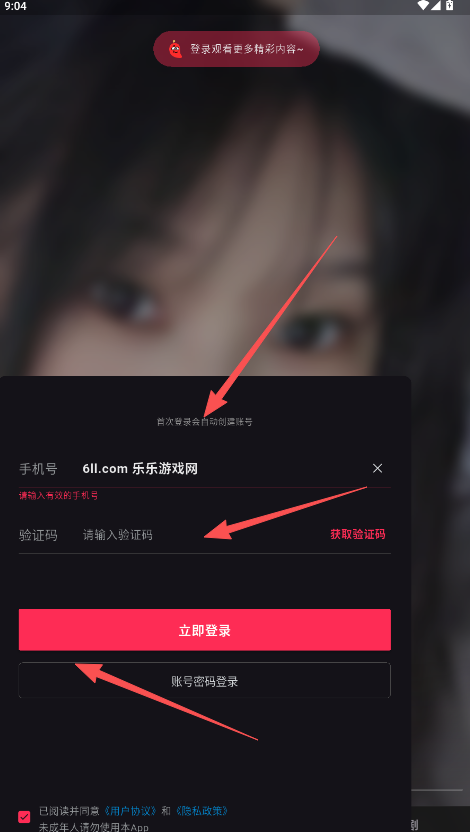 輸入有效手機(jī)號(hào)碼并填寫短信驗(yàn)證碼完成注冊(cè)登錄。