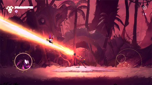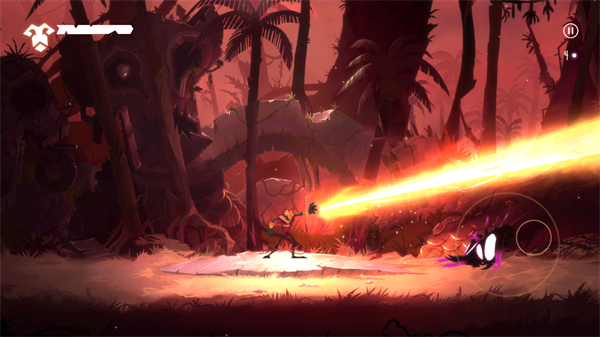 玩家推動右搖桿時,角色會朝著搖桿所指的方向發射出圓錐形的光束,以此來攻擊敵人。