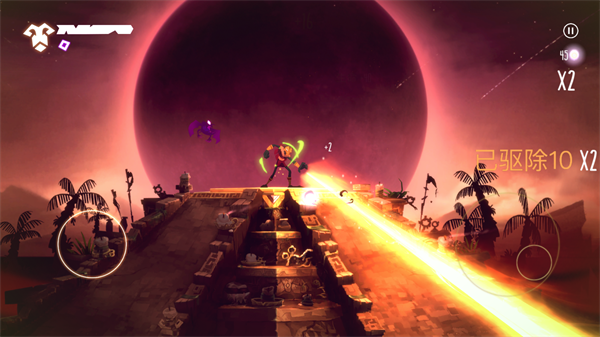 角色射出的光線能穿透低等級雜兵,可一次性消滅多個敵人;但中后期登場的高級敵人會阻擋光線,處理起來更棘手。此時建議用咒術攻擊輔助清除靠近的敵人,不然容易因受傷中斷連擊,進而影響得分。