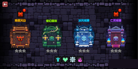 秘境副本是獲取裝備的主要渠道,每一層秘境都包含地底火山、奇幻森林、冰風城寨和亡靈城堡四張分地圖,對應的怪物屬性分別為火、水、木以及雜(也就是三種屬性的怪物都存在),玩家使用針對性的武器可以達到事半功倍的效果呢!秘境副本會隨著玩家冒險等級的提升而解鎖新的秘境層數。