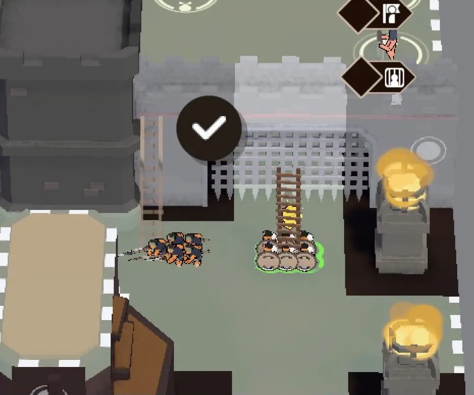 樓梯可以搭建在城墻上通往二樓(新手需要注意,建好樓梯后要先點擊部隊,再點擊對應的城墻,看到出現亮的對勾才能放置部隊)