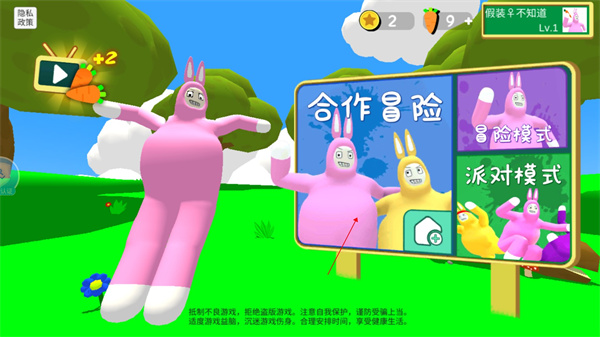 首先我們進入超級兔子人聯機版,接著點擊合作冒險模式。