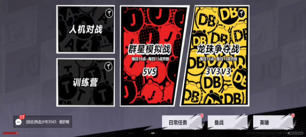 可選擇游戲模式,目前有群星模擬戰(zhàn)和龍珠爭(zhēng)奪戰(zhàn)這兩種模式。