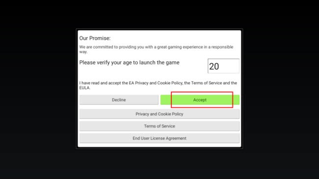 在這個頁面安裝植物大戰僵尸北美漢化版,然后啟動游戲。接著輸入年齡信息,選擇18歲及以上的選項,再點擊accept按鈕。