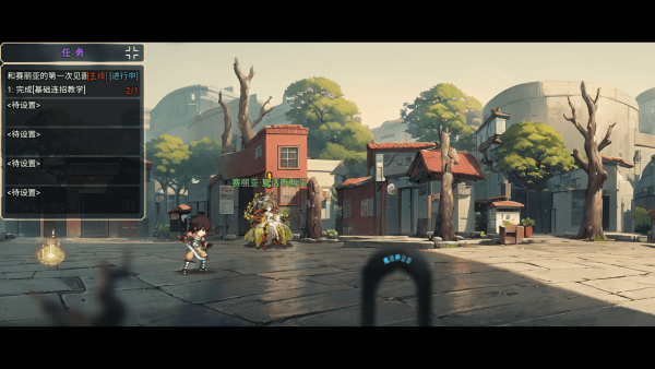 美術的2D表現(xiàn)略顯粗糙,帶有較強的個人創(chuàng)作風格。主城場景里NPC分布稀疏,整體空間感顯得較為空曠。