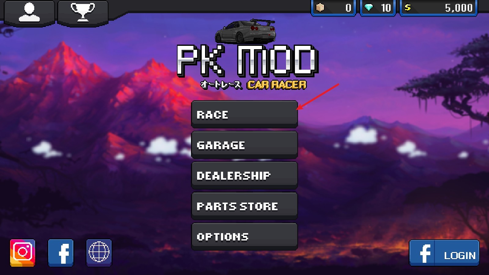 進(jìn)入游戲后,點(diǎn)擊RACE開始比賽。
