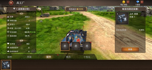 在《坦克爭鋒》這款游戲里,每輛坦克最多能裝配三個不同的配件,這些配件可以切實增強坦克的整體性能。每個配件的作用都不一樣,玩家能夠依據自己的需求來自由組合,進而打造出獨具特色的坦克風格。