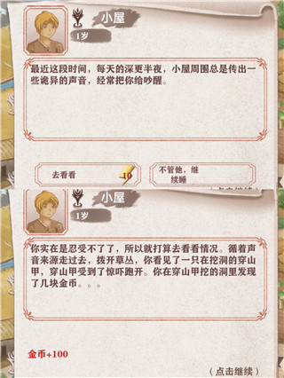 10、晚上睡覺有異響,尋找來源有概率獲得100金幣,有概率什么都沒有。