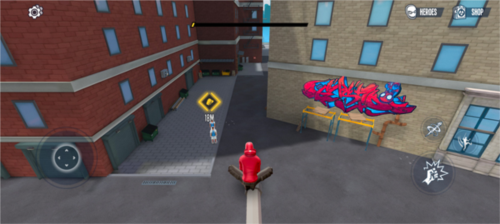 操作方式采用虛擬搖桿,左側負責控制移動,右側可進行攻擊、發射蛛絲、跳躍等動作。