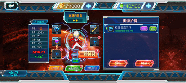 還可為角色裝備武器道具,并進行強化提升;